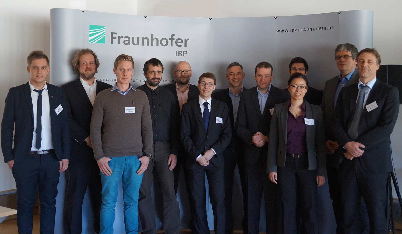 Von links nach rechts: Jens Bredehorn (buildingSMART e.V.), Markus Ermert (Projektträger DLR e.V.), Jörg Jungedeitering (Jade Hochschule), Dr.-Ing. Thomas Liebich (aec3 Deutschland GmbH), Gunther Wölfle (buildingSMART e.V.), Peter Noisten (Fraunhofer IBP), Günter Wenzel (Fraunhofer IAO), Achim Oberg (ifm, Uni Mannheim), Aude Tan (Fraunhofer IBP), Johannes Gantner (Fraunhofer IBP), Prof. Dr.-Ing. Hans-Hermann Prüser (Jade Hoschule), Thomas Kirmayr (Fraunhofer IBP)