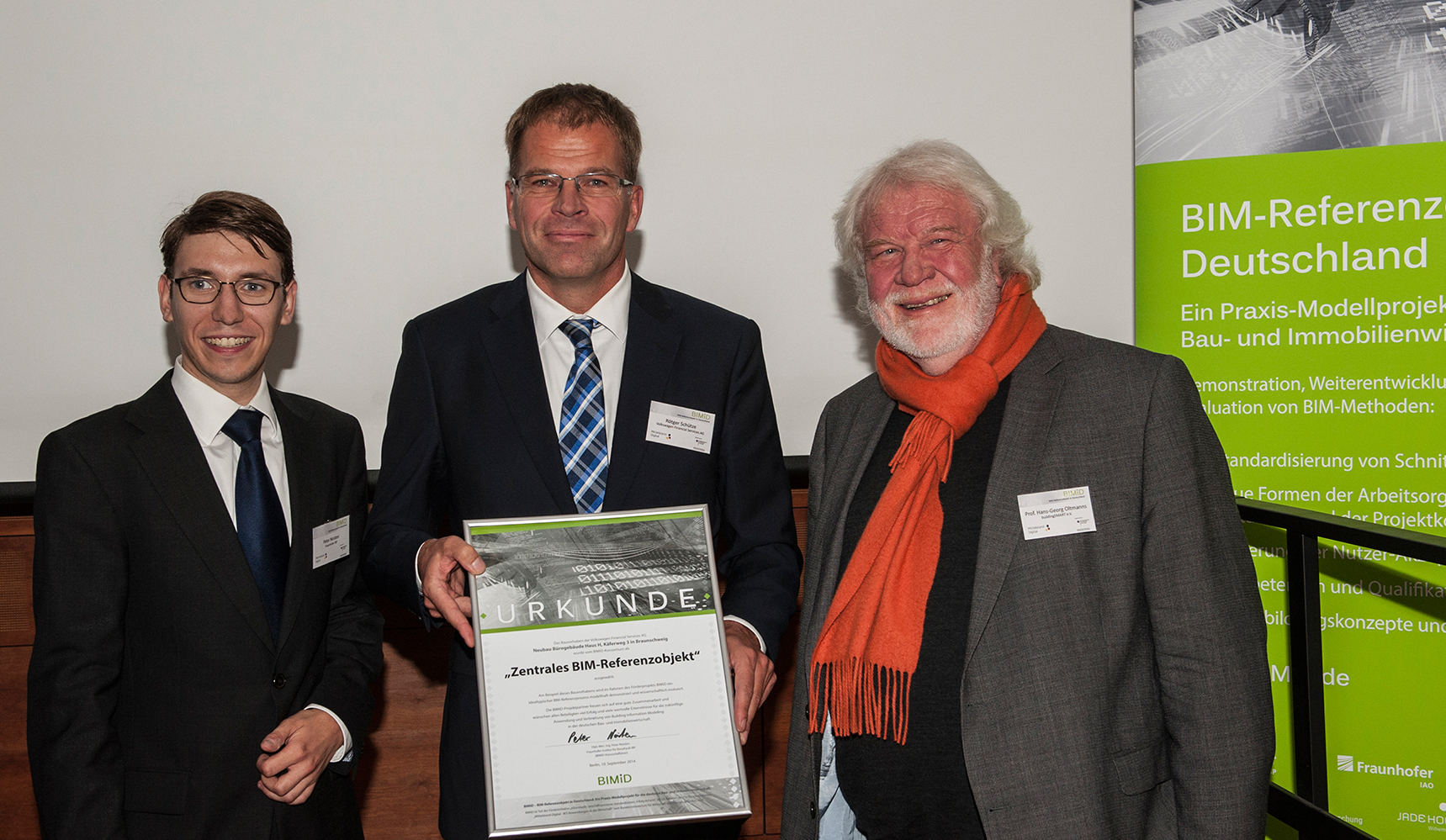 Von links nach rechts: Peter Noisten (Fraunhofer IBP), Rötger Schütze (Volkswagen Financial Services) und Prof. Hans-Georg Oltmanns (buildingSMART e.V.). (Foto: BIMiD / Gerhard Haug)