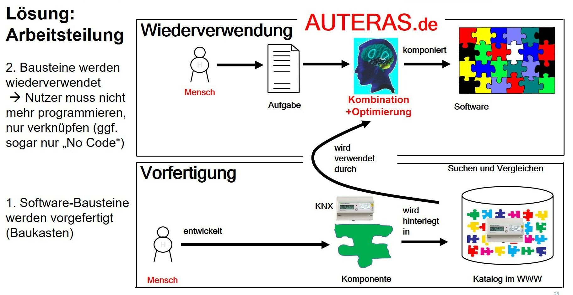 AUTERAS Entwurfsplattform Gebäudeautomation: Galerie > Bild 2 Puzzle Vorfertigung beim Hersteller und Wiederverwendung im Gebäude .jpg