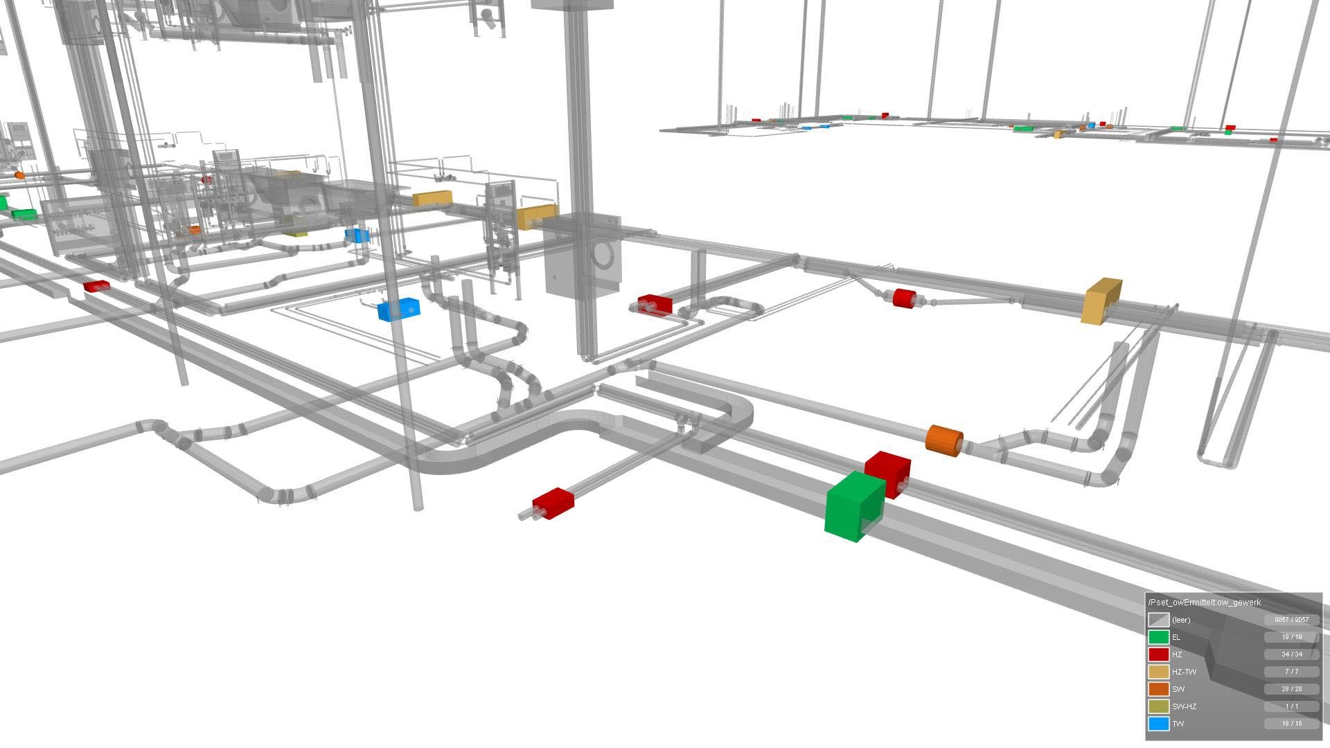 Die Schlitz- und Durchbruchsplanung erfolgte fachübergreifend. Im Bild zu sehen sind die verschiedenen Arten und Formen von notwendigen Durchbrüchen für die Haus- und Sanitärleitungen sowie für die Elektroleitungen in den Wohngebäuden. Die koordinierte Planung im Projekt half, Fehler zu minimieren und dadurch hohe Kosten in der Roh- und Ausbauphase einzusparen.